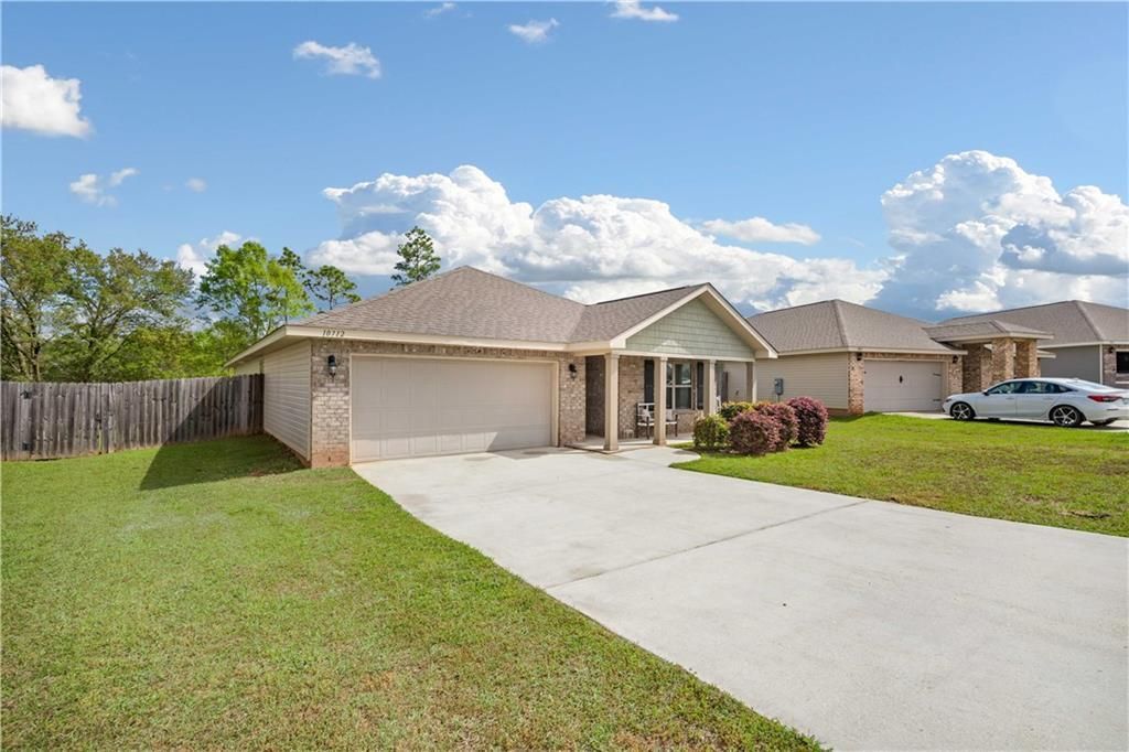 Welcome to 10712 Burlington Way N. in highly desirable West Mobile - built in 2019 and thoughtfully designed withtoday's lifestyle in mind.This popular Ryder floor plan offers 4 bedrooms and 2 baths with a spacious open-concept layout, perfect for botheveryday living and entertaining. The kitchen is the heart of the home, featuring rich espresso cabinetry, granitecountertops, stainless steel appliances, and a large island that provides plenty of prep space and seating.You'll love the durable luxury vinyl plank flooring throughout the main living areas, paired with plush carpet in thebedrooms for added comfort. The primary suite offers a peaceful retreat, while the additional bedrooms provideflexibility for guests, a home office, or growing families.Step outside to a covered back porch-ideal for relaxing evenings or weekend gatherings. A two-car garage addsconvenience and extra storage.This home is also equipped with a Smart Home system, including a video doorbell, smart lock, programmablethermostat, and voice-command capabilities for seamless control right from your phone or tablet.Located in the Baker School District and USDA eligible, this home offers both value and location. The neighborhood alsofeatures planned amenities including a community pool and clubhouse.Don't miss your chance to own a move-in ready home in one of West Mobile's fastest-growing areas! Listing agency makes no representation as to the accuracy of any information deemed important. Buyer and/or buyer's agent to verify all details.