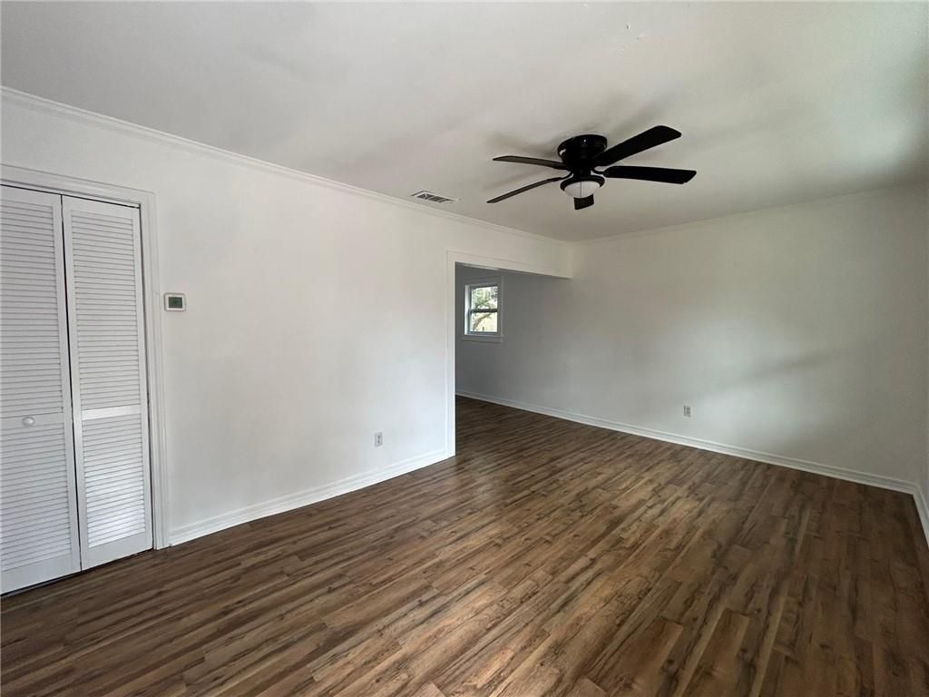 Welcome to this adorable three-bedroom, one-and-a-half-bathroom cottage located in the desirable Grand Bay neighborhood. Meticulously renovated throughout, this home is sure to impress with its inviting features and thoughtful updates. Central air unit ensures comfortable climate year-round. Dedicated laundry area adds convenience to everyday living. Beautiful original hardwood floors accent the bedrooms, providing warmth and character. The remodeled kitchen includes breakfast nook for casual meals. White cabinets and butcher block style countertops. Stainless steel sink and fixture. Stainless range with glass top. The den offers versatile options, whether like a family room, formal living space, game room, or a spacious office. It features a half bath and a separate entrance for added functionality. Corner lot location offers additional privacy and curb appeal. Fresh paint inside and out gives the home a clean, modern look. New lighting fixtures and numerous ceiling fans enhance comfort and style. An awesome covered patio is perfect for cool evenings and outdoor cooking. Property is sold as is, where is. Buyer to verify all information during due diligence.