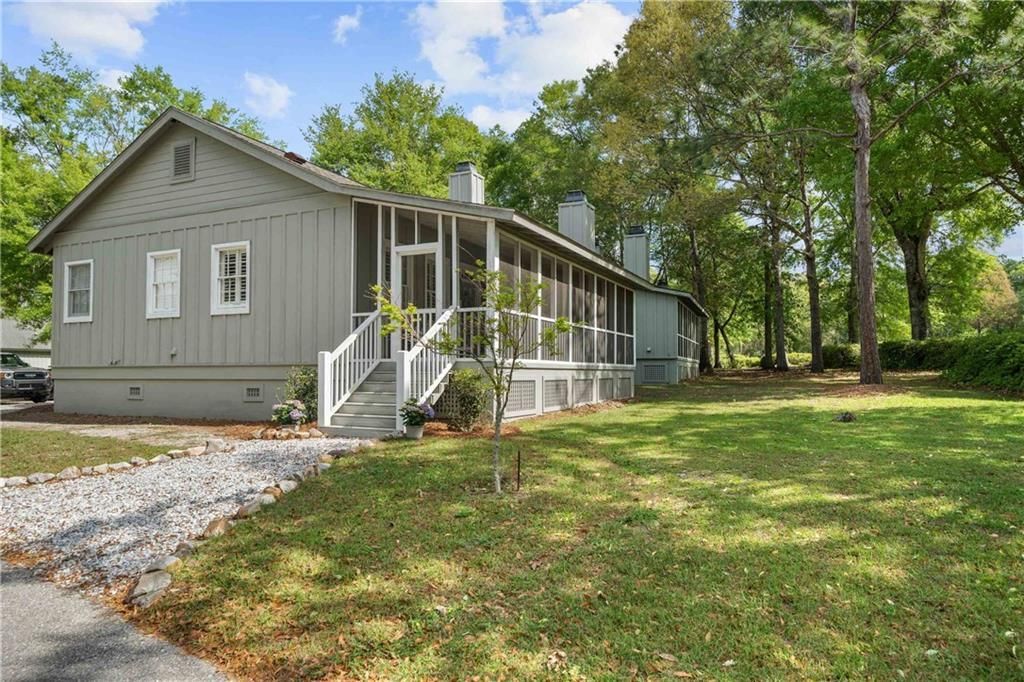 A peaceful retreat set within a natural landscape, where scenic lake views, rolling fairways, and frequent sightings of deer and local wildlife create an idyllic setting for walking, biking, and unwinding. Tucked inside the gated golf course community of Steelwood, this thoughtfully designed one-bedroom, two-bath cabin offers a refined retreat on a desirable corner lot. Step onto the expansive screened front porch, where a wood-burning fireplace creates a warm, welcoming setting to enjoy the sunrise and the view- the screened-in porch overlooks the beautifully maintained driving range. Offered partly furnished and move-in ready, the home features an open-concept great room with wood ceilings- wood walls and plantation shutters. Vaulted ceilings seamlessly connecting the Kitchen, Dining area, and inviting living space anchored by a second stone wood-burning fireplace. The spacious primary suite is a true haven, complete with generous closet space, an oversized vanity with built-in cabinetry, a separate shower, and a garden tub designed for quiet relaxation. A well-appointed second bath accommodates guests, while the utility room-featuring a stacked washer and dryer and a furniture piece designed to fit a twin-size bed, additional shelving, and space-saving pocket doors-adds both function and efficiency. This home would make a wonderful weekend retreat or a full-time residence. Steelwood offers an exceptional lifestyle: enjoy the Chapel grove amenities including pickleball courts, basketball courts, a resort-style pool and pavillion, and a playground-all included in POA dues. For those seeking an elevated experience, optional membership to Steelwood Country Club provides access to the championship golf course, a 200+ acre stocked lake with fishing dock, clubhouse dining, fitness center, and additional pool. Buyer to verify all information during due diligence. Buyer to verify all information during due diligence.