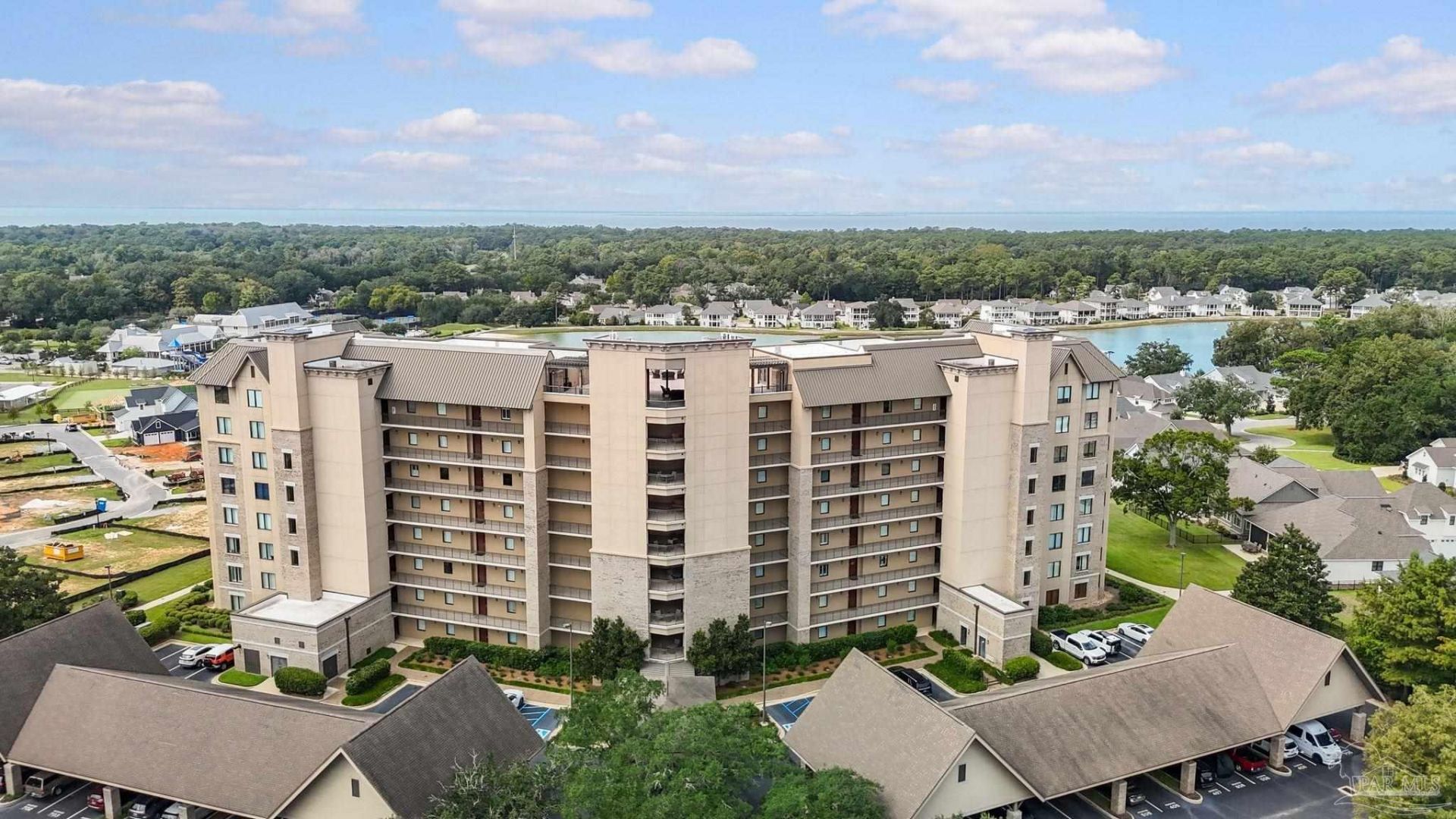 Experience refined, ground-floor living in one of Fairhope's most sought-after communities, The Colony at the Grand. This well-maintained 2-bedroom, 2-bath condo offers upscale finishes paired with true lock-and-leave convenience. The updated kitchen features quartz countertops, a lowered bar for easy entertaining, designer tile backsplash, modern lighting, and upgraded plumbing fixtures. GE Monogram stainless steel appliances, a wine cooler, warming drawer, and abundant cabinetry complete a space designed for both function and style. Inside, 10-foot ceilings, 8-foot doors, travertine flooring, and an open layout create a bright, spacious feel. An oversized pantry and utility area with built-in cabinetry provide exceptional storage, while custom window treatments and updated lighting add a cohesive, polished finish. Ground-floor access offers effortless indoor-outdoor living, step directly from the screened porch to enjoy views of Lake Lily, along with access to walking trails, green space, and a firepit gathering area. Community amenities include a rooftop terrace overlooking Mobile Bay, perfect for sunset views, and a well-appointed kitchen space for meetings or events. Assigned covered parking and exterior storage add everyday convenience. Located adjacent to Lakewood Country Club, with optional memberships for golf, pickleball, swimming, and fitness, and just minutes from downtown Fairhope, dining, medical, and shopping. Low-maintenance living, strong amenities, and a prime location. Buyer to verify all information during due diligence.