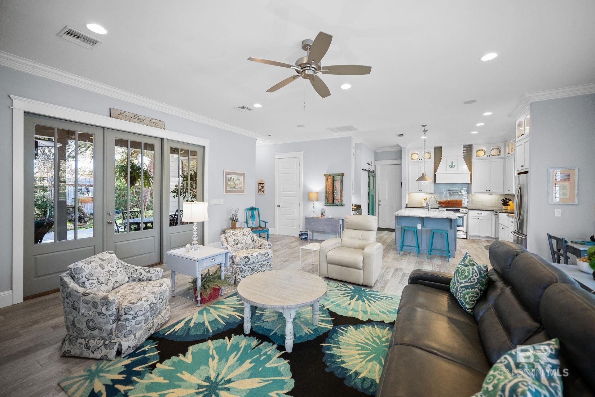 Nestled in a golf course community just minutes from downtown Fairhope, this custom-built dogtrot-style home blends refined craftsmanship with relaxed Eastern Shore living. The open-concept main living area is filled with natural light and features elegant architectural details, flowing seamlessly into a gourmet kitchen with custom cabinetry, premium appliances, a spacious island with seating, and a large walk-in pantry. The primary suite offers a private retreat with a separate entrance and an en-suite bath featuring marble double vanities and a utility room within the oversized walk-in closet. Upstairs, a private third bedroom with full bath and large walk-in closet provides ideal guest or bonus space. This property is designed for outdoor enjoyment with inviting spaces for lounging and dining with peaceful landscape views, a tranquil water feature, and a dedicated outdoor dining area, creating a resort-like atmosphere. Community amenities include golf, pool, pickleball, and dining?with no HOA fees. Ideally located near Fairhope's shops, restaurants, and bayfront charm. Buyer to verify all information during due diligence.
