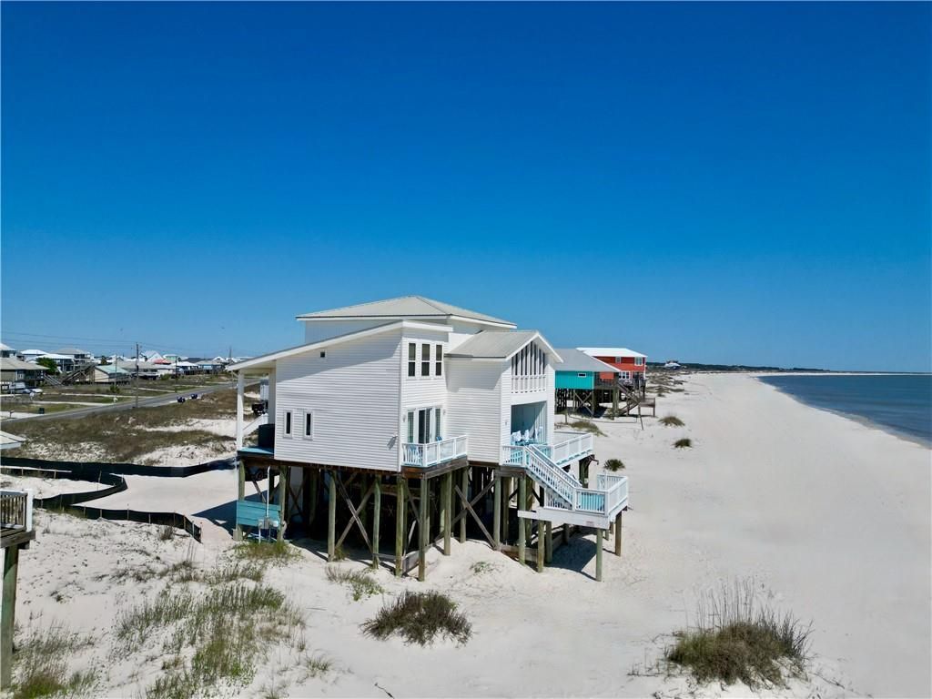 Positioned along an unrivaled stretch of beach, this gulf front property is thoughtfully designed and offers a quiet, refined approach to coastal living. Designed by New York architect Jonathan Graves, the home reflects a deliberate balance between modern simplicity and its natural surroundings. With clean lines and an elegant palette, the Gulf itself is allowed to remain the focal point. The home's layout is both purposeful and well considered, with four bedrooms and four baths positioned so that each bedroom captures a direct view of the water. It's a rare design that gives every guest their own connection to the shoreline, offering a sense of privacy and calmness that is hard to replicate. Inside, natural light fills the open living spaces, where clean white tones and thoughtful spacing create an environment that feels bright yet relaxed, refined without ever feeling overdone. Thoughtful details throughout the home add character without drawing too much attention. A shrimp inspired backsplash offers a subtle nod to the area's coastal heritage, while a copper sailfish at the entry brings in a sense of craftsmanship and identity. Original artwork, commissioned specifically for the property, reflects the movement and tones of the Gulf, tying the interior to its surroundings in a way that feels natural and well balanced. Outdoor living is equally compelling. Expansive porches extend the home's living space toward the water, offering wide, unobstructed views across the Gulf. The setting provides a level of privacy that is increasingly difficult to find, allowing for a more relaxed and uninterrupted experience of the coastline. The surrounding environment adds another layer of appeal. Daily life here includes the quiet rhythm of coastal wildlife. Sit back and watch the shorebirds along the waterline, and the dolphins moving just offshore. If you're lucky enough, you may even be able to catch the subtle glow of bioluminescence on certain evenings. The beach itself becomes an extension of the property, whether for fishing, crabbing, or simply enjoying the natural pace of the Island. Dauphin Island is shaped by its preserved landscapes, rich history, and limited development which gives this beautiful place a sense of simplicity that's increasingly hard to find. It's an environment that complements the home's design, where the focus remains on connection, comfort, and the surrounding landscape. This property is not defined by excess, but by clarity of purpose. Architecture that frames the Gulf, spaces that prioritize livability, and a setting that speaks for itself.Call today to schedule your own private tour.