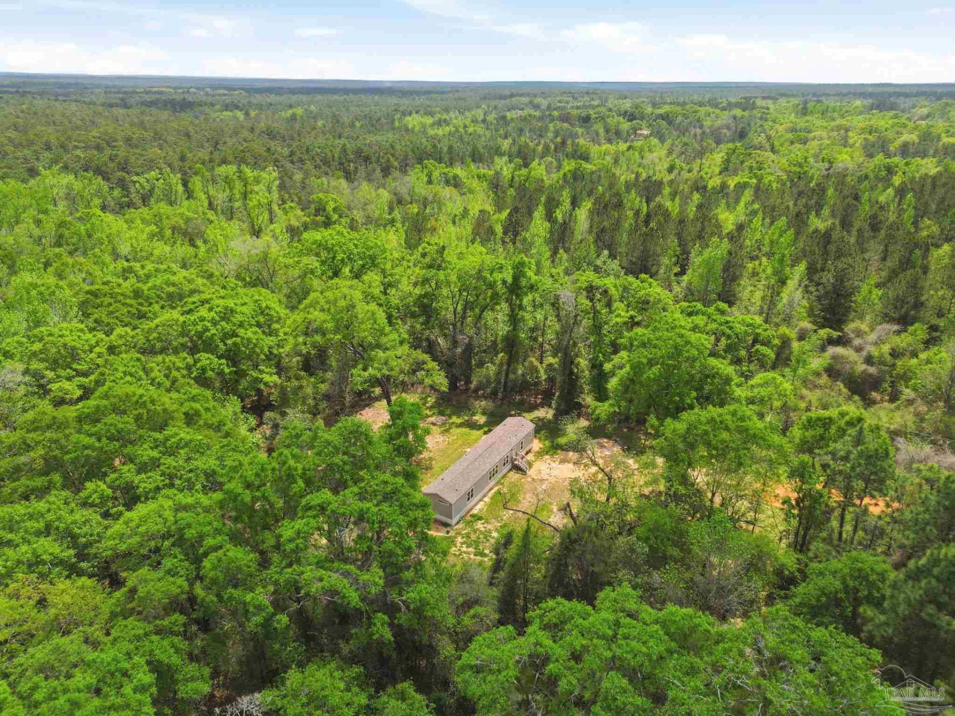 Private, secluded, and surrounded by nature-this 3-bedroom, 2-bath, split-plan, 2024-built home is tucked away on a beautifully wooded 4.5-ACRE parcel with no visible neighboring homes, offering a rare level of peace and privacy. Expansive picture windows in the living room frame stunning views of the surrounding woods, creating the perfect setting to watch deer and wildlife right from your home. A winding, wooded drive leads you into your own quiet retreat, where the home sits in a natural clearing while still being enveloped by mature trees. Inside, you'll find a bright, open-concept layout filled with natural light. The chef's dream kitchen features a HUGE island, stainless steel appliances, an apron-front (farm) sink, and a statement vent hood-perfect for both everyday living and entertaining. The split floor plan offers added privacy, with a generously sized primary suite separate from the additional bedrooms. The primary ensuite bath includes a double vanity, a glass walk-in shower, and a soaking tub with rustic wood accents. Secondary bedrooms are well-sized and share a full bath on the opposite side of the home. Step outside and enjoy expansive wooded acreage with endless potential-whether you're looking to add a workshop, create trails, or simply enjoy the quiet surroundings. Ideally located near Adventures Unlimited, Blackwater River State Forest, Bear Lake, and endless opportunities for hiking, swimming, canoeing, creekfront cabins, glamping/camping, zip lines, and outdoor exploration, this property delivers both seclusion and adventure. Washer and dryer included for added convenience.
