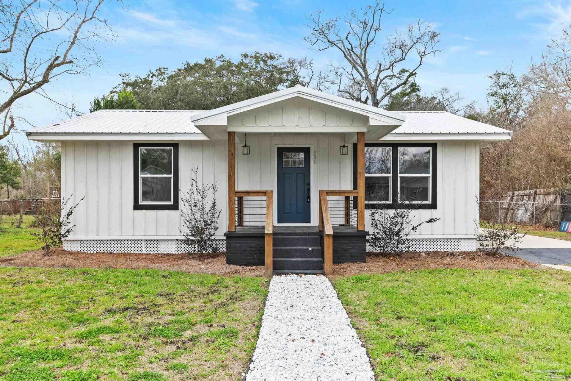 NOW ONLY $199,999!!Located at 506 Byrne St, this 1,476 sq. ft. cottage has been meticulously gutted and rebuilt from the floor joists up, offering the structural integrity of a new build with the soul of a classic home. This move-in-ready, Fortified-certified house features 3 bedrooms and 3 full baths, including a unique 1-bedroom lockout with a separate entrance-perfect for guests or rental potential. Every structural element is brand new, from the reinforced subflooring and studs to the trusses and fortified metal roof. The interior showcases modern design, featuring new sheetrock, luxury vinyl plank flooring, designer tile, brand new doors, fixtures, lighting and hardware throughout. The gourmet kitchen is a standout with quartz countertops, new cabinetry, and stainless appliances, while the living area features an electric fireplace and a family room prepped for your media setup. Every bathroom was completely renovated featuring new vanities and showers. No detail was overlooked: the home boasts all-new plumbing (including the main line to the street), a new electrical system and breaker panel, LED lighting, a digital door lock, new insulation, a water heater and high-efficiency windows. Outside, the home shines with new board-and-batten wood siding and professional landscaping. Situated in a prime location near the town center and just south of I-65, you're minutes from Alabama's white-sand beaches and an easy commute to Mobile or Pensacola. This worry-free property also includes a transferable termite bond and a home warranty. Tour today! Buyer to verify all information during due diligence.
