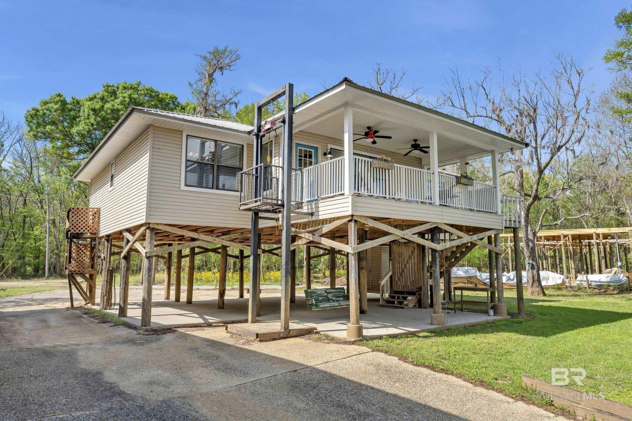 Tucked beneath graceful cypress trees along the scenic Tensaw River, this beautifully renovated retreat offers the perfect blend of relaxation, functionality, and investment potential. Step outside to your private dock, ready for boating, fishing, and soaking in the peaceful waterfront lifestyle. The expansive covered porch provides the ideal setting for morning coffee or evening sunsets, all surrounded by the natural beauty of the riverfront. Inside, the home welcomes you with an open, light-filled layout that creates a warm and inviting atmosphere. Recent updates?including new flooring, cabinetry, and countertops?bring a fresh, modern touch while maintaining the home's charm. An elevator lift adds convenience and accessibility for everyday living. Enjoy easy water access with a shared boat ramp, making it simple to launch and explore everything the Tensaw River has to offer. With short- and long-term rental flexibility, this property presents an excellent opportunity for both personal enjoyment and income potential. Discover the tranquility, beauty, and versatility of riverfront living at Upper Bryants Landing. Buyer to verify all information during due diligence.